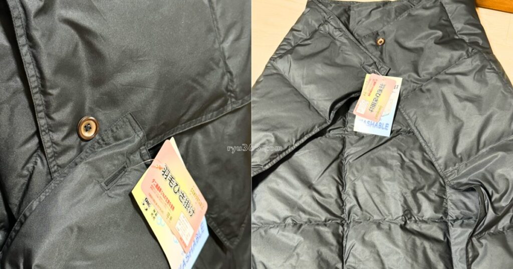 - 中わた:ダックダウン 50% + スモールフェザー 50%、充填量 100g