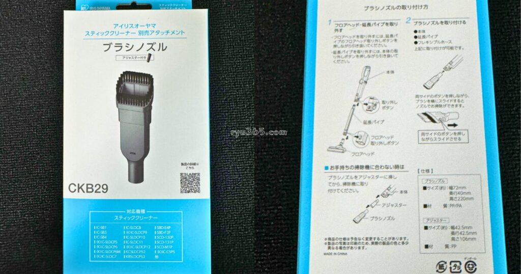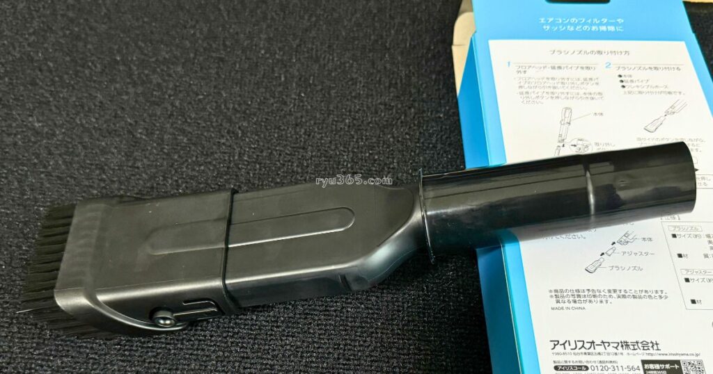 届いたときの様子。付属のブラシでは小さく掃除しにくい場所があったため、追加購入。アタッチメントをつけても吸引力が落ちた感じはしなかったです。