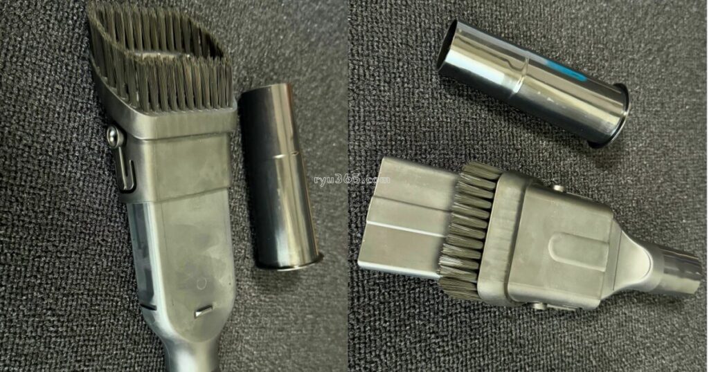 すき間ノズルやブラシノズルなどアタッチメントも充実。痒い所に手が届くという感じで、意外に活躍します。