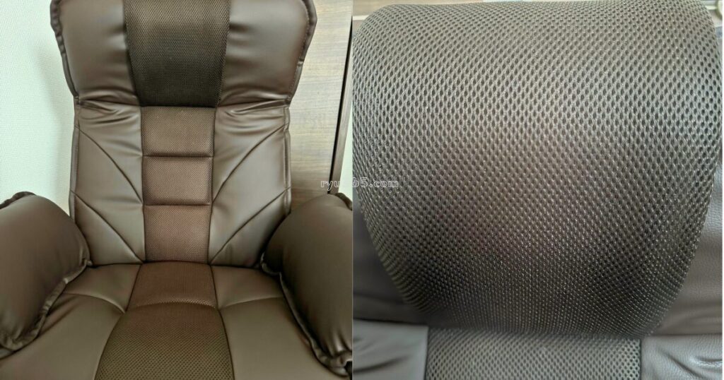 座面には低反発ウレタンを搭載し、座った際の体圧を均等に分散。合成皮革+メッシュという異素材の組み合わせや立体構造のデザインが、高級感を感じさせます。気になる場合は、チェックしてみてください!