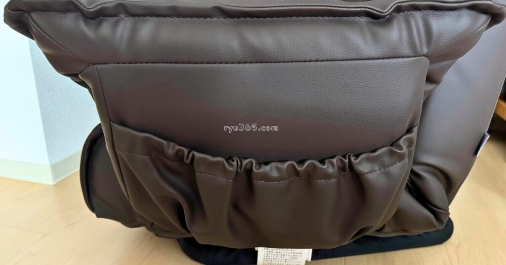 左側から見た様子。こちらには再度ポケットが付いています。リモコンや、雑誌新聞、ちょっとした小物も入ります。