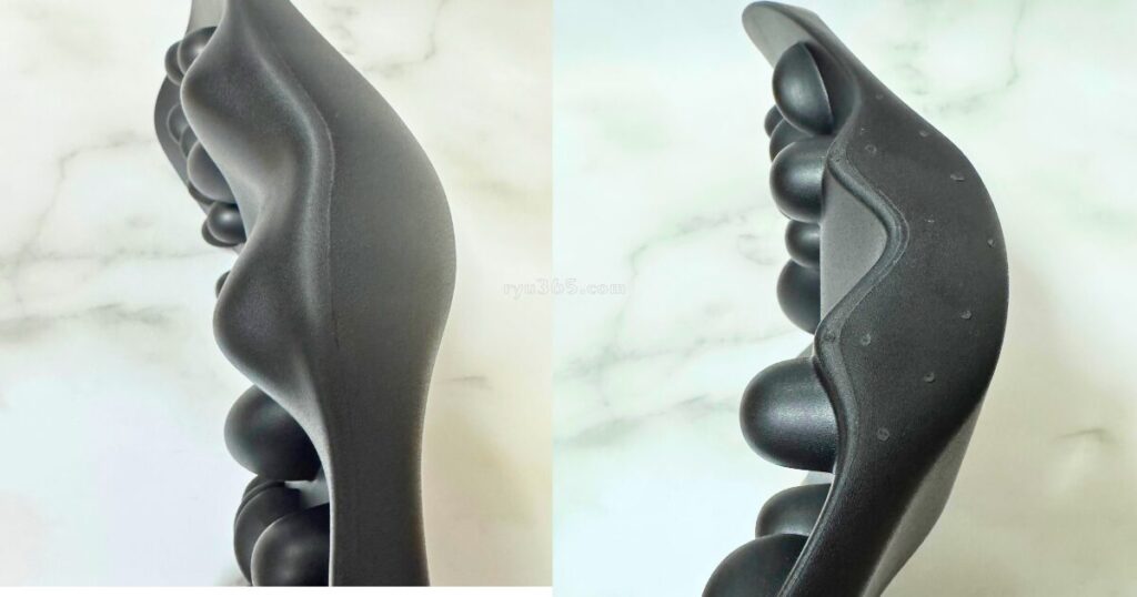 • 「ゆらゆら左右に傾けると、より強い刺激になりほぐれる感じがする。また、裏面にすると背中のストレッチがしっかりされて気持ちが良い」