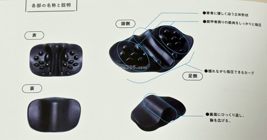 分かりやすく図解されています。左右に角度を付けると、指圧感の調整ができます。