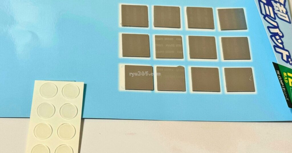 貼り付けタイプなので設置も非常に簡単。裏面の粘着シートで貼るだけで、すぐに使い始められます。サイズは1.7cmの正方形なので、狭い箇所の調整もしやすいです。冷却パッドのカラーやデザインはシンプルで目立ちにくいのも良いポイントかなと思います。気になる場合は、チェックしてみてください!