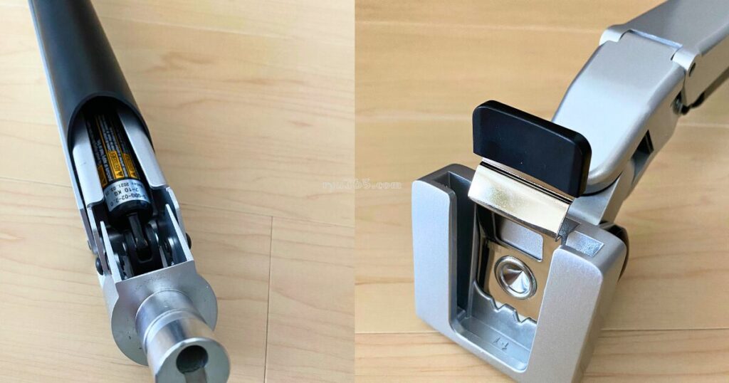 アームの上部。VESAマウントの部品を差し込む部分は、こんな感じになっています。