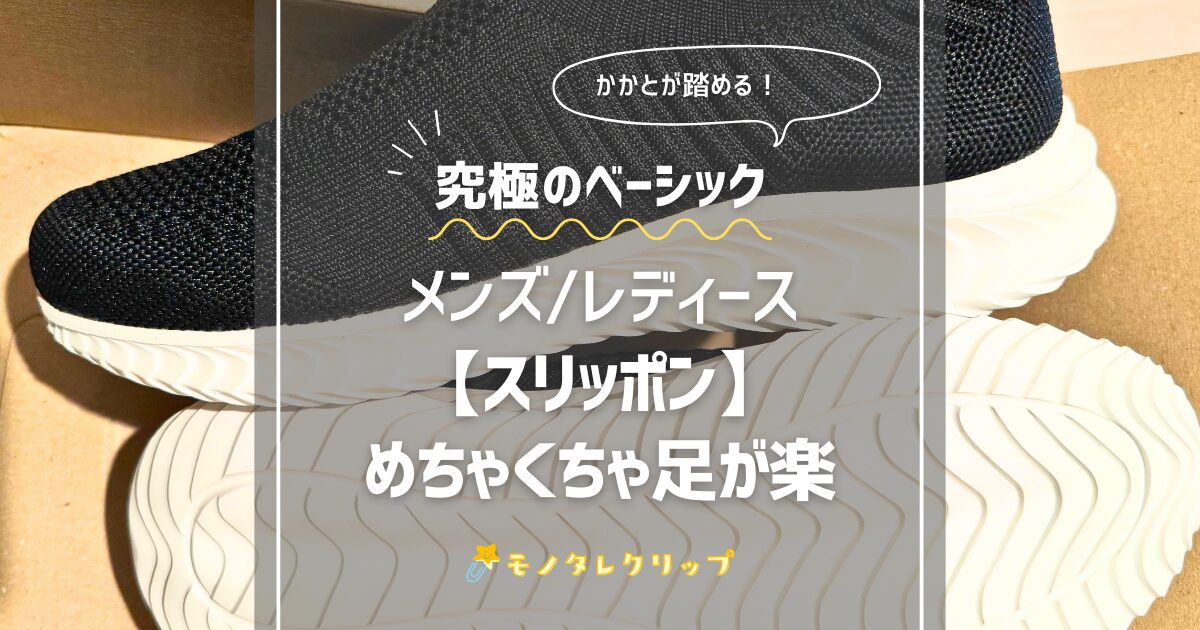 本記事で紹介する究極のベーシック スリッポンは、紐なしでさっと楽に履けるスリッポンタイプです。普段使いはもちろん、ウォーキング・立ち仕事・ジム靴としても幅広く使えます。男女問わず疲れにくい靴として人気です。