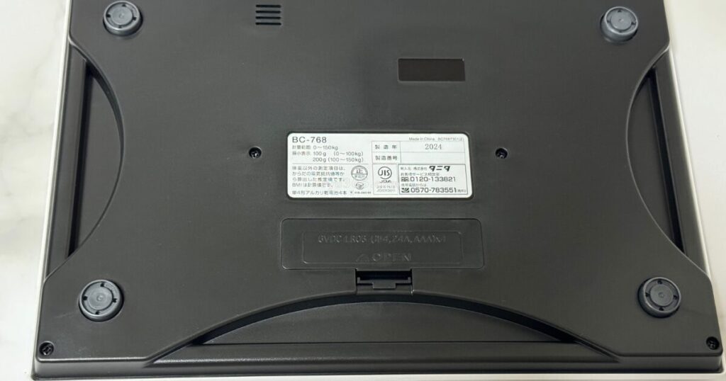 • 最大体重:150㎏まで(100㎏までは100g単位、100㎏以上は200g単位の計測)